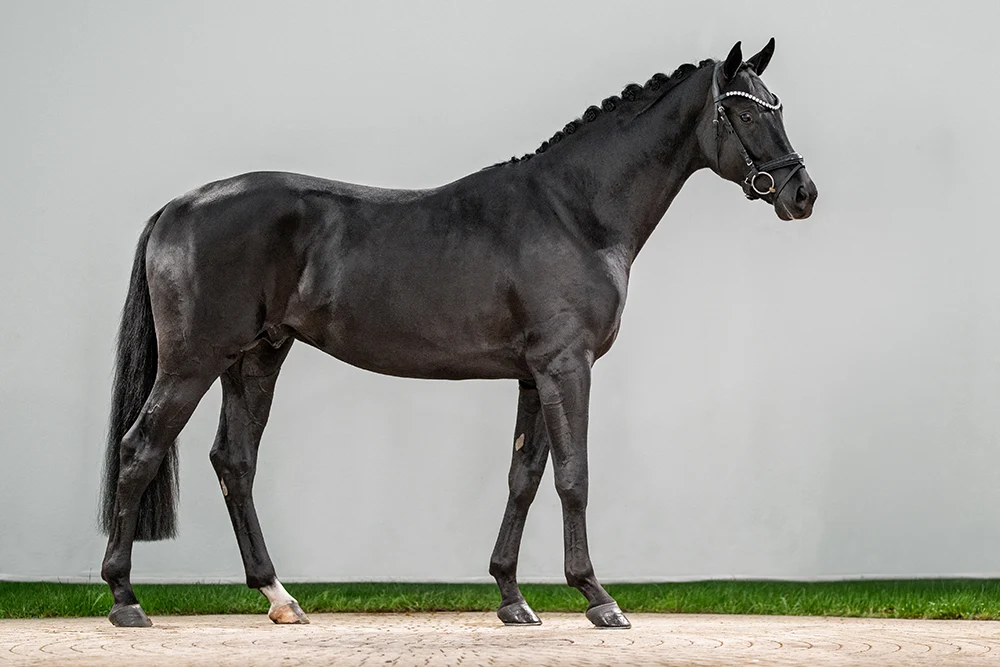 Het hengstenstation Gut Neuenhof is verheugd fokkers met deze elegante, raszuivere donkerbruine Westfaler (genetisch geen roodfactor) een echte ster voor de toekomst te kunnen bieden. In tijden waarin rechthoekige paarden uitdagingen vormen voor trainers en zadelmakers, komt hij met lange lijnen, een droog fundament en een ideale bovenlijn. Wanneer hij begint te bewegen, zijn alle vragen beantwoord. Deze jongeling maakt in actie waar wat zijn exterieur belooft in stand. Daarnaast is hij altijd braaf en gemotiveerd, zowel in de omgang als onder de ruiter. Overtuig uzelf!